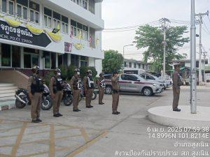 ได้เรียกแถวสายตรวจ เพื่อเคารพธงชาติพร้อมอบรมปล่อยแถวสายตรวจและชี้แจงข้อราชการ ข้อสั่งการ