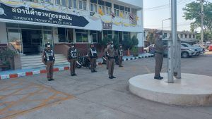 – เคารพธงชาติ สวดมนต์ไหว้พระ กล่าวอุดมคติตำรวจ กล่าววิสัยทัศน์ผู้บังคับบัญชา
