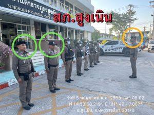 ได้เรียกแถวสายตรวจ เพื่อเคารพธงชาติพร้อมอบรมปล่อยแถวสายตรวจและชี้แจงข้อราชการ ข้อสั่งการ