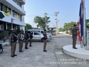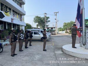 เพื่อเคารพธงชาติพร้อมอบรมปล่อยแถวสายตรวจและชี้แจงข้อราชการ ข้อสั่งการ