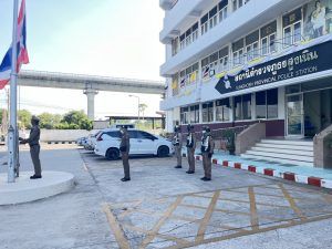ได้เรียกแถวสายตรวจ เพื่อเคารพธงชาติพร้อมอบรมปล่อยแถวสายตรวจและชี้แจงข้อราชการ ข้อสั่งการ