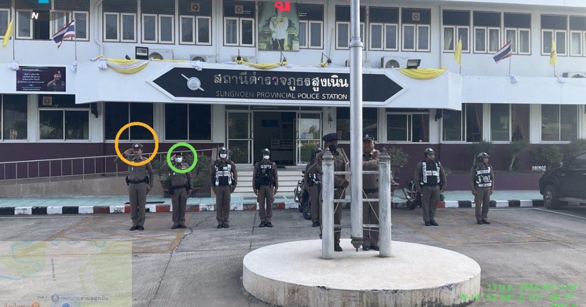 – เคารพธงชาติ สวดมนต์ไหว้พระ กล่าวอุดมคติตำรวจ กล่าววิสัยทัศน์ผู้บังคับบัญชา