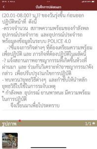 -ตรวจจำนวน สภาพความพร้อมของกำลังพล อุปกรณ์ประจำกาย และอุปกรณ์ประจำรถ พร้อมลงข้อมูลในระบบ POLICE 4.0