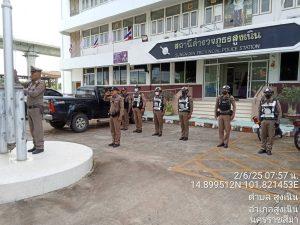ได้เรียกแถวสายตรวจ เพื่อเคารพธงชาติพร้อมอบรมปล่อยแถวสายตรวจและชี้แจงข้อราชการ ข้อสั่งการ ผู้บังคับบัญชา ดังนี้