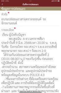 -ตรวจจำนวน สภาพความพร้อมของกำลังพล อุปกรณ์ประจำกาย และอุปกรณ์ประจำรถ พร้อมลงข้อมูลในระบบ POLICE 4.0