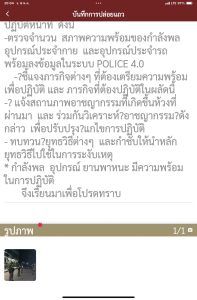 -ตรวจจำนวน สภาพความพร้อมของกำลังพล อุปกรณ์ประจำกาย และอุปกรณ์ประจำรถ พร้อมลงข้อมูลในระบบ POLICE 4.0