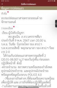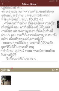 -ตรวจจำนวน สภาพความพร้อมของกำลังพล อุปกรณ์ประจำกาย และอุปกรณ์ประจำรถ พร้อมลงข้อมูลในระบบ POLICE 4.0