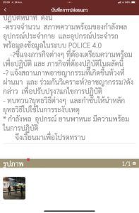 -ตรวจจำนวน สภาพความพร้อมของกำลังพล อุปกรณ์ประจำกาย และอุปกรณ์ประจำรถ พร้อมลงข้อมูลในระบบ POLICE 4.0