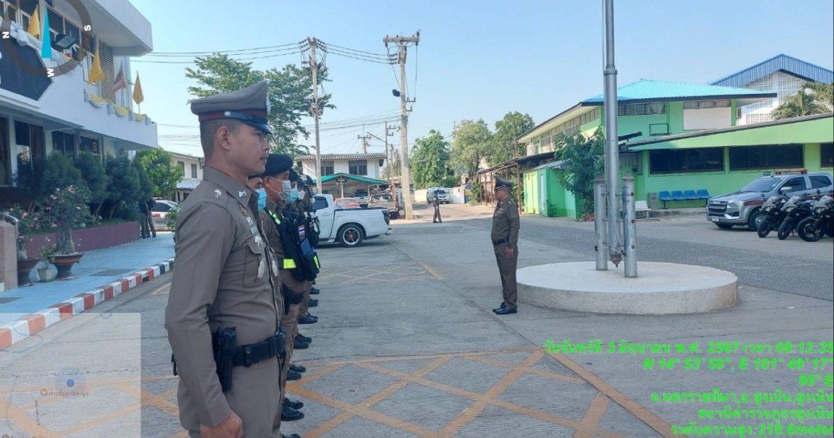 ประจำวันที่ 3 มิ.ย.2567 เวลา 08.00 น. พ.ต.อ.ศุภวัชร อังคสยาวัฒน์ ผกก.สภ.สูงเนิน,พ.ต.ท.พิทักษ์ วงศ์อาจ รองผกก.ป.สภ.สูงเนิน,พ.ต.ท.ญาณวุฒิ ชินทุมพงษ์ สวป.,ร.ต.อ.วันชัย บิงกระโทก รอง สวป.ฯ, ร้อยเวร 2-0