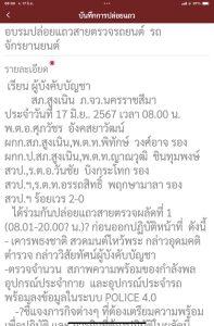-ตรวจจำนวน สภาพความพร้อมของกำลังพล อุปกรณ์ประจำกาย และอุปกรณ์ประจำรถ พร้อมลงข้อมูลในระบบ POLICE 4.0