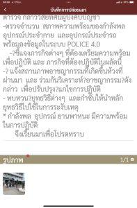 -ตรวจจำนวน สภาพความพร้อมของกำลังพล อุปกรณ์ประจำกาย และอุปกรณ์ประจำรถ พร้อมลงข้อมูลในระบบ POLICE 4.0