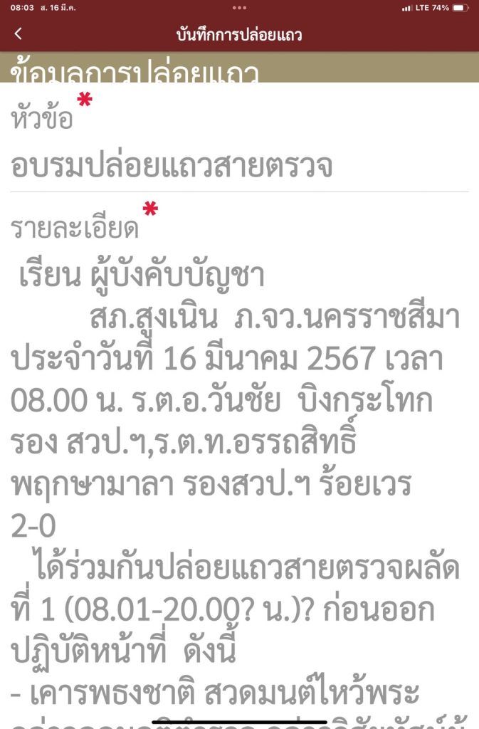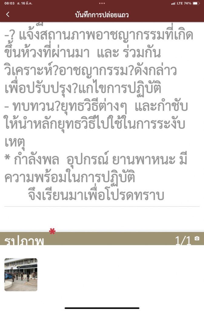 -ตรวจจำนวน สภาพความพร้อมของกำลังพล อุปกรณ์ประจำกาย และอุปกรณ์ประจำรถ พร้อมลงข้อมูลในระบบ POLICE 4.0