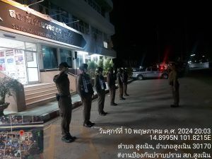 ได้เรียกแถวสายตรวจ เพื่อเคารพธงชาติพร้อมอบรมปล่อยแถวสายตรวจและชี้แจงข้อราชการ ข้อสั่งการ