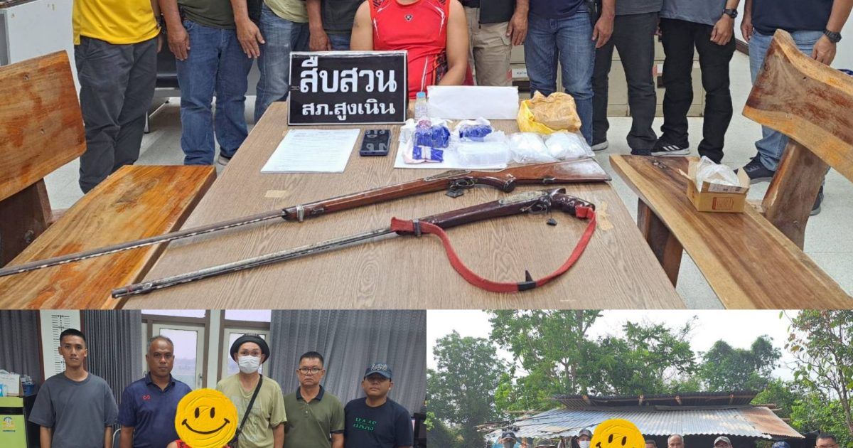 วันที่ 11 มี.ค.2567 ภายใต้การอำนวยการของ พ.ต.อ.ศุภวัชร อังคสยาวัฒน์ ผกก.สภ.สูงเนิน ได้สั่งการให้ พ.ต.ท.ณัฐวุฒิ บุญสิงห์ รอง ผกก.สส.ฯ , พ.ต.ต.สรายุทธ ทรายตะคุ สว.สส.ฯ พร้อมชุดสืบสวน สภ.สูงเนินออกปฏิบัติหน้าที่สืบสวนจับกุมผู้กระทำผิดกฎหมายในพื้นที่ และได้ปิดล้อมตรวจค้นเป้าหมาย 2 เป้าหมาย จับกุมตัวผู้ต้องหาได้ 2 ราย 2 คน รายละเอียดดังนี้