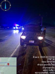 สภ.สูงเนิน ปิดเหตุ 191 รถปีนฟุตบาท ตรงข้าม บ.มาบุญครอง ไม่มีเจ็บ เบอร์065-3532215 ไม่มีคนเจ็บ ร.ต.ต. วิเชียร แย้มสูงเนิน ว.30 ว.4 ที่เกิดเหตุ