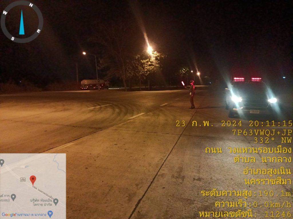 วันที่ 23 ก.พ. 2567 เวลาประมาณ 20.12 น. ร.ต.ท.สมบัติ อัคเสริญ รอง สว.(ป) สภ.สูงเนิน ปฏิบัติหน้าที่ร้อยเวรจราจร พร้อมชุดจราจร ตรวจถนนสาย บายพาสนากลาง 290 เขตติดต่อโพธิ์กลาง เปิดสัญญาณไฟวาบ-วาบ ป้องกันเหตุวัยรุ่นจับกลุ่มแข่งรถในทางสาธารณะ ไม่พบกลุ่มเป้าหมาย เหตุการณ์ทั่วไปปกติ