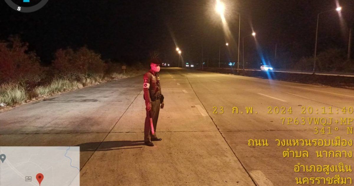 วันที่ 23 ก.พ. 2567 เวลาประมาณ 20.12 น. ร.ต.ท.สมบัติ อัคเสริญ รอง สว.(ป) สภ.สูงเนิน ปฏิบัติหน้าที่ร้อยเวรจราจร พร้อมชุดจราจร ตรวจถนนสาย บายพาสนากลาง 290 เขตติดต่อโพธิ์กลาง เปิดสัญญาณไฟวาบ-วาบ ป้องกันเหตุวัยรุ่นจับกลุ่มแข่งรถในทางสาธารณะ ไม่พบกลุ่มเป้าหมาย เหตุการณ์ทั่วไปปกติ