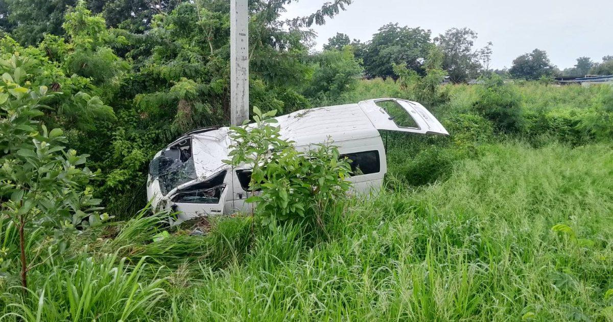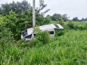สูงเนิน 60 สายตรวจจราจร ว 4 เหตุว 40 ด้วยตนเองรถตู้ โตโยต้า สีขาวเสียหลักตกลงข้างทางชนเสาไฟฟ้า