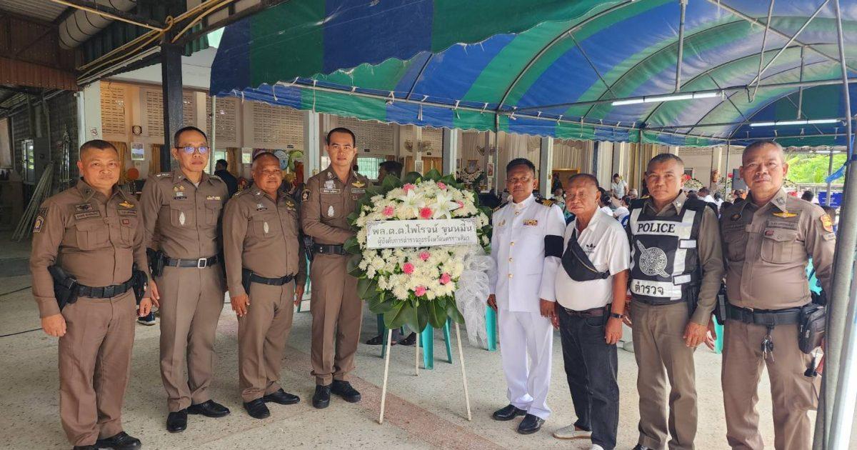 วันนี้ (23 พ.ค.2568) เวลา 16:00 น. พล.ต.ต.ไพโรจน์ ขุนหมื่น ผู้บังคับการตำรวจภูธรจังหวัดนครราชสีมา ได้มอบหมายให้ พ.ต.ท.พิทักษ์ วงศ์อาจ รอง ผกก.ป.สภ.สูงเนิน พร้อมข้าราชการตำรวจ สภ.สูงเนิน นำพวงหรีดมาวางเคารพศพ พ.ต.ท.สมทบ คูพันดุง เพื่อแสดงความอาลัยแก่ผู้วายชนม์