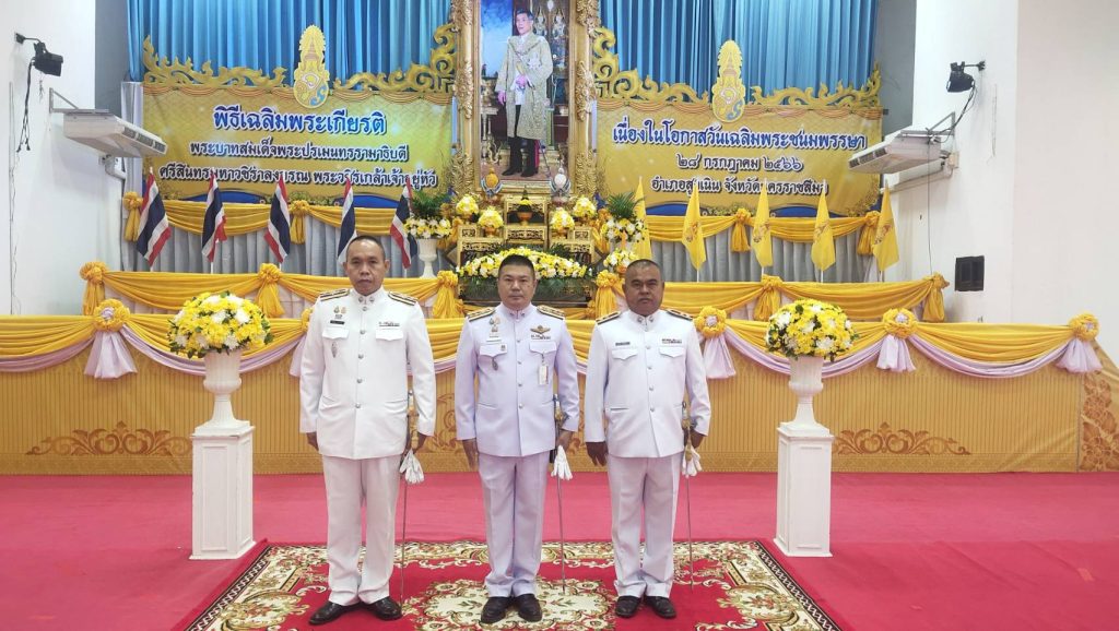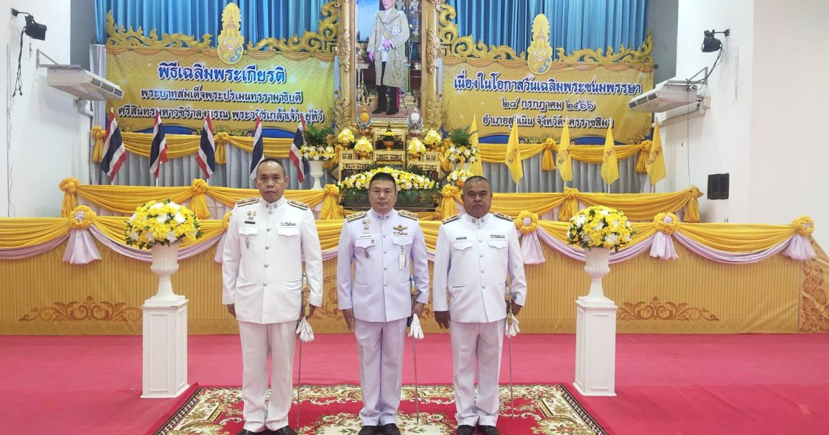 วันที่28 ก.ค.2566 เวลา 07.30 น. พ.ต.อ.วทัญญู รุ่งรัศมี ผกก.สภ.สูงเนิน พร้อมด้วยข้าราชการตำรวจ สภ.สูงเนิน ร่วมพิธีทำบุญตักบาตร ถวายพระราชกุศล เนื่องในโอกาสวันเฉลิมพระชนมพรรษาพระบาทสมเด็จพระเจ้าอยู่หัว ประจำปีพุทธศักราช 2566 ณ ที่ว่าการอำเภอสูงเนิน จังหวัดนครราชสีมา