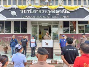 วันพฤหัสบดีที่ 10 เม.ย.68 เวลา 09.00 น. ณ บริเวณหน้า สภ.สูงเนิน พ.ต.อ.อิษฏ์ บุญญะฤทธิ์ ผกก.สภ.สูงเนิน, พ.ต.ท.พิทักษ์ วงศ์อาจ รอง ผกก.ป.สภ.สูงเนิน พ.ต.ท.สรายุทธ ทรายตะคุ สว.สส.สภ.สูงเนิน พ.ต.ท.วศิลาวุธ วงศ์ประชา สว.อก.สภ.สูงเนิน พ.ต.ต.ภูมิรัฐ พิสุทธิ์คุณวุธน์ สวป.(ชส)สภ.สูงเนิน พร้อมด้วย ฝ่ายปกครองอำเภอสูงเนิน ,รพ.สูงเนิน,อาสาสมัครตำรวจบ้าน,กู้ภัย และ ข้าราชการตำรวจสภ.สูงเนิน ร่วมพิธีปล่อยแถวเพื่อ รักษาความปลอดภัยและอำนวยความสะดวกจราจรในช่วงเทศกาลสงกรานต์ 2568