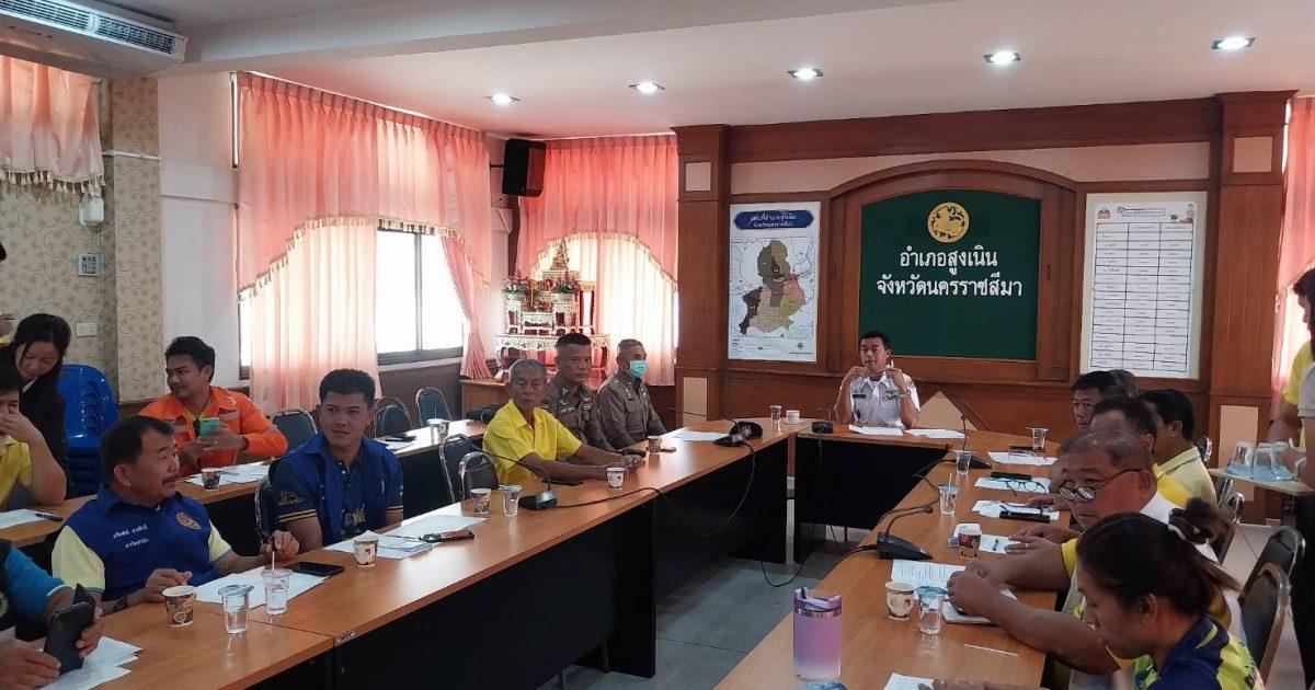 ห้องประชุมชั้น 2 ที่ว่าการอำเภอสูงเนิน อำเภอสูงเนินจังหวัดนครราชสีมา โดยมีท่านบัลลังก์ หมอกกระโทก ปลัดป้องกันอำเเภอสูงเนินเป็นประธานการประชุม