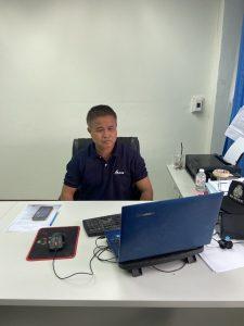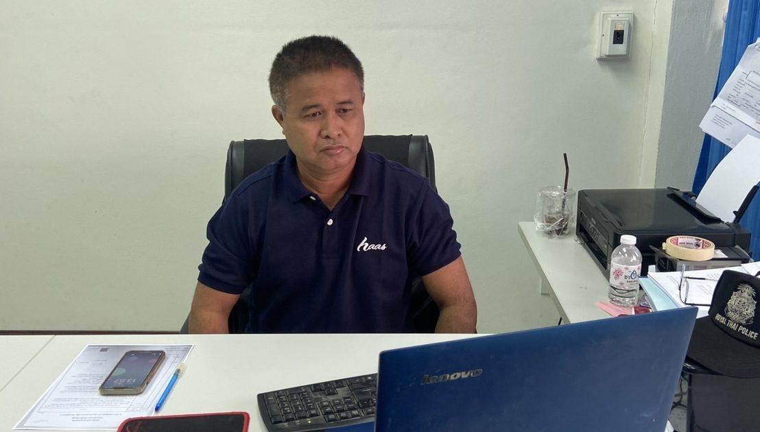 พ.ต.ท.ณัฐวุฒิ บุญสิงห์รอง ผกก.สส.สภ.สูงเนิน เฝ้าฟังการประชุมทางไกลผ่านจอภาพ(zoom)