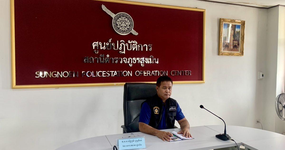 พ.ต.ท.ณัฐวุฒิ บุญสิงห์ รอง ผกก.สส.สภ.สูงเนิน เฝ้าฟังการประชุม ปิดล้อมตรวจค้นยาฯ ผ่านระบบ ZOOM 1 ณ ห้อง ศปก. สภ.สูงเนิน