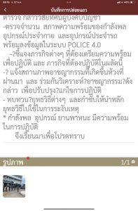 -ตรวจจำนวน สภาพความพร้อมของกำลังพล อุปกรณ์ประจำกาย และอุปกรณ์ประจำรถ พร้อมลงข้อมูลในระบบ POLICE 4.0