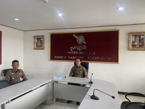 พ.ต.ท.พิทักษ์ วงศ์อาจ รอง ผกก.ป.สภ.สูงเนิน ร.ต.อ.ประสิทธิ์ สมัยกลาง รอง สว.สส.ฯ เฝ้าฟังการประชุมบริหารงานจราจร ภ.จว.นครราชสีมา