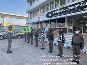 ได้เรียกแถวสายตรวจ เพื่อเคารพธงชาติพร้อมอบรมปล่อยแถวสายตรวจและชี้แจงข้อราชการ ข้อสั่งการ