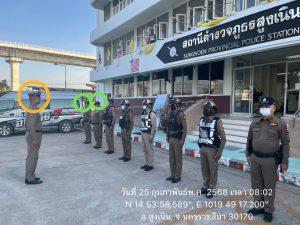 ได้เรียกแถวสายตรวจเพื่อเคารพธงชาติพร้อมอบรมปล่อยแถวสายตรวจและชี้แจงข้อราชการ ข้อสั่งการ
