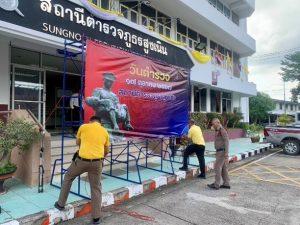 วันที่ 16 ต.ค. 2567 เวลา 10.30 น. พ.ต.ท.วศิลาวุธ วงศ์ประชา สว.อก.สภ.สูงเนิน พร้อมด้วยเจ้าหน้าที่ฝ่ายจัดเตรียมสถานที่ ได้จัดเตรียมสถานที่เนื่องในวันตำรวจ 17 ต.ค. 2567 บริเวณด้านหน้า สภ.สูงเนิน