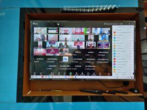 พร้อมฝ่ายอำนวยการที่เกี่ยวข้อง เฝ้าฟังการประชุม ขับเคลื่อน ศปก.ตร. ผ่านระบบประชุมทางไกลผ่านจอภาพ ณ ห้องประชุม ศปก.ภ.จว.นครราชสีมา โดยมี สภ.ในสังกัด เฝ้าฟังการประชุม ณ ที่ตั้งหน่วย