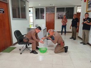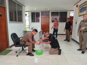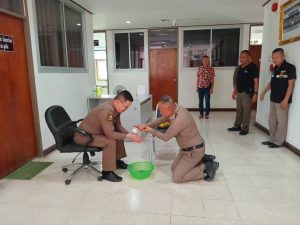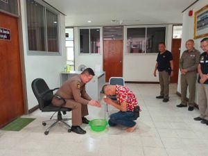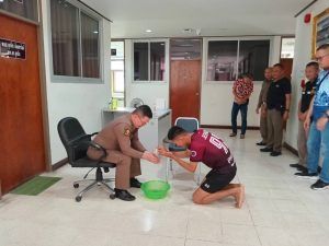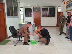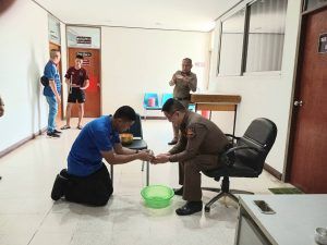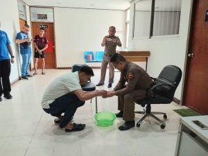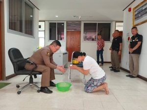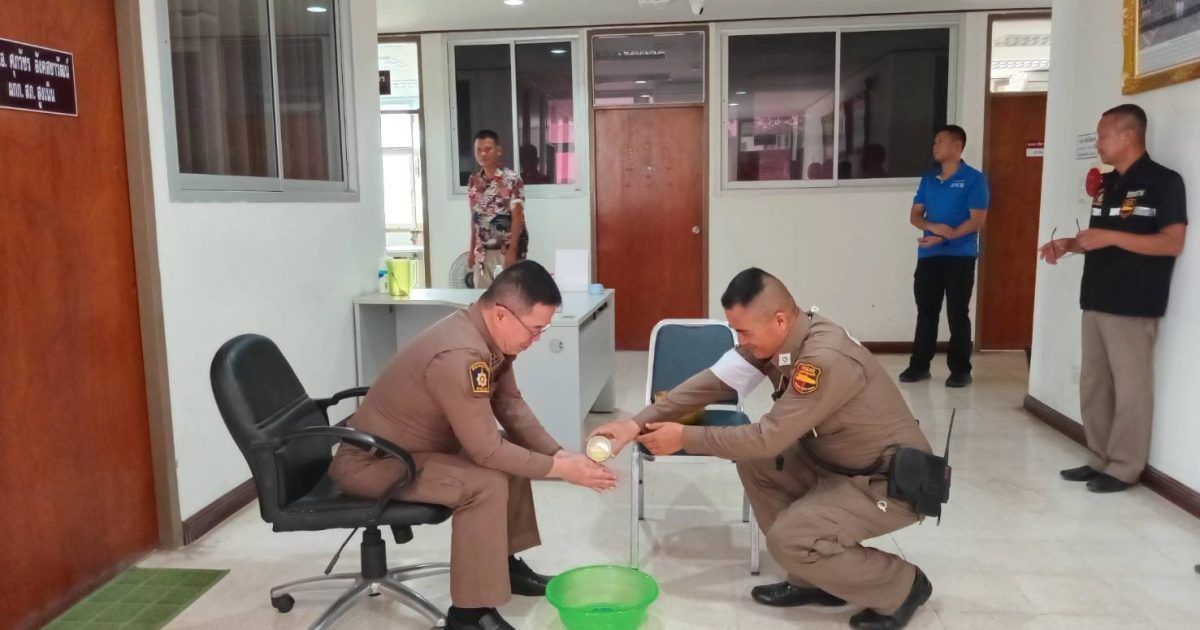 ข้าราชการตำรวจ สภ.สูงเนิน นำโดย พ.ต.ท.เอกชัย ฤทธิมา สว.(สอบสวน)ฯ,พ.ต.ต.ศรัณย์ธร ทองดาษ สว.(สอบสวน)ฯ จึงได้รดน้ำอวยพรให้