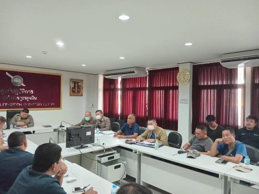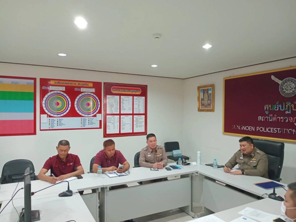 พ.ต.ท.ณัฐวุฒิ บุญสิงห์ รอง ผกก.สส.ฯ,พ.ต.ต.สรายุทธ ทรายตะคุ สว.สสฯ,พ.ต.ต.ศุภชัย แก่นธาตุ สว.(สอบสวน)ฯ และชุดสืบสวนของ สภ.สูงเนิน ชุดสืบ ภ.จว.นม. นำโดย พ.ต.อ.พรเทพ ทุ้ยแป ผกก.สส.ภ.จว.นม.,พ.ต.ท.สาธิต คอกขุนทด รอง ผกก.สส.ภ.จว.นม.พร้อมชุดสืบ ภ.จว.นม. ชุดสืบสวน ภ.3ร.ต.ท.เสกสรรค์ วาดโคกสูง,ร.ต.ท.สุรินทร์ ดอกงิ้ว พร้อมชุดสืบสวน ภ.3 ร่วมประชุม ณ ห้อง ศปก.สภ.สูงเนิน