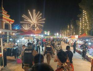 วันที่ 24 ม.ค.68 เวลา 20.00 น. พ.ต.ท.พิทักษ์ วงศ์อาจ รอง ผกก.ป.สภ.สูงเนิน, พ.ต.ต.สรายุทธ ทรายตะคุ สว.สส.สภ.สูงเนิน พร้อม ว.30 ว.4 รักษาความสงบเรียบร้อยในงานทอดผ้าป่าประจำปี วัดหนองบอน ต.นากลาง อ.สูงเนิน จังหวัดนครราชสีมา ตั้งจุดตรวจคัดกรองเพื่อตรวจค้นอาวุธ สิ่งของผิดกฎหมายก่อนเข้าบริเวณงาน กำชับสายตรวจเดินเท้าเดินตรวจรอบบริเวณงาน กวดขันจับกุม พรบ.ควบคุมเครื่องดื่มแอลกอฮอล์ และความผิดอื่นทุกประเภทภายในงาน และให้อยู่ปฏิบัติหน้าที่จนกว่าจะเสร็จภารกิจ เพื่อป้องกันเหตุทะเลาะวิวาท และในงานมีการแสดงหมอลำ