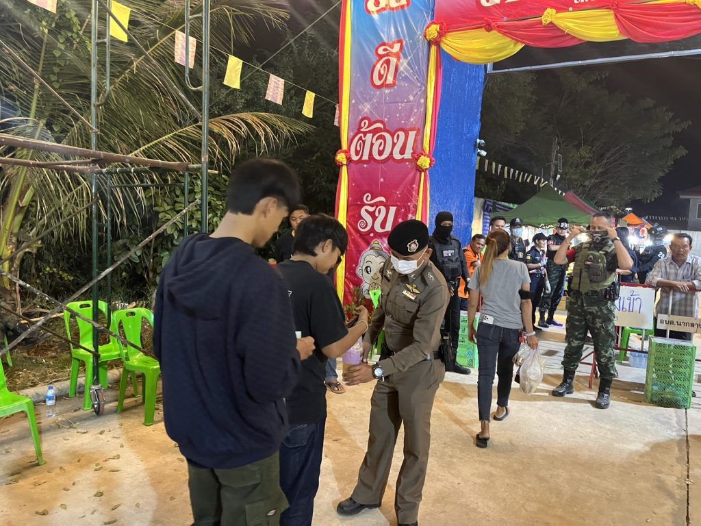 3.ชุดตั้งจุดตรวจจุดสกัด บริเวณถนนทางเข้างาน และอำนวยความสะดวกการจราจร เพื่อป้องกันเหตุ