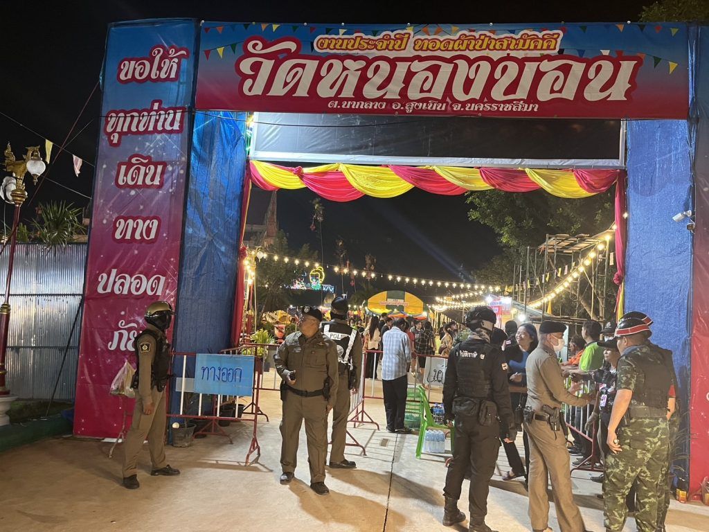 2 ชุดตรวจร่วมกับคณะกรรมการจัดงาน และชุดประชาสัมพันธ์ห้ามจำหน่ายเครื่องแอลกอฮอล์ ภายในบริเวณวัดโดย เด็ดขาด