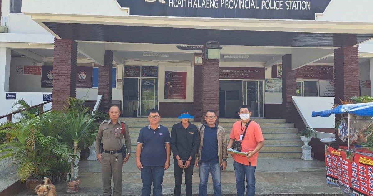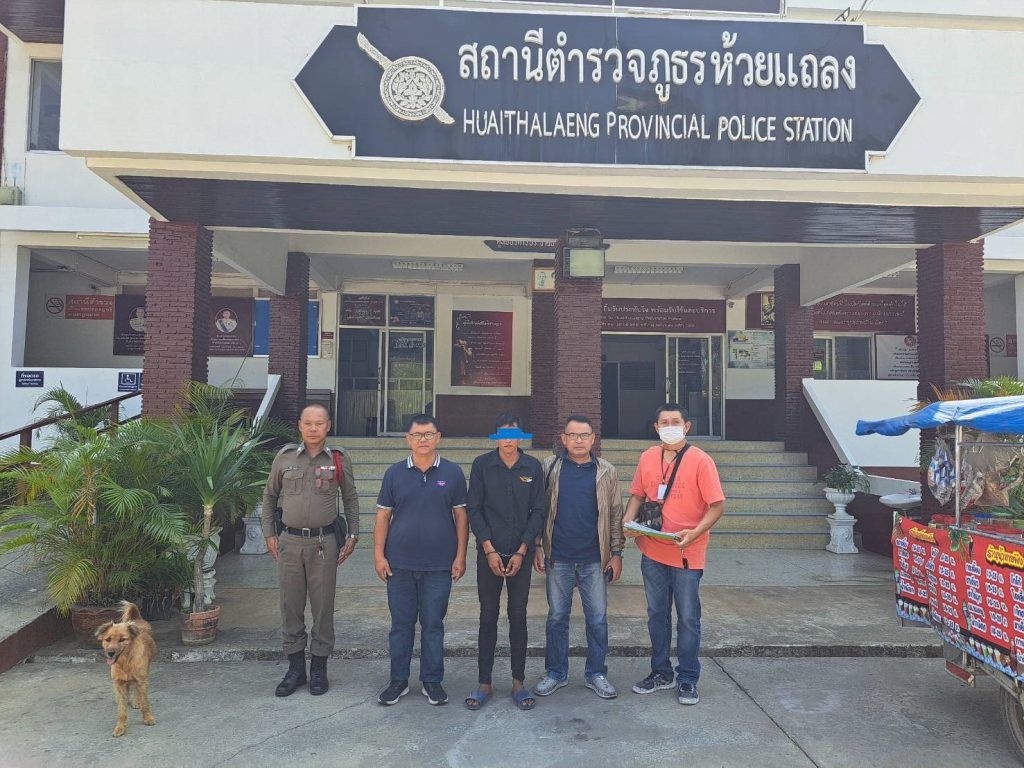 ร.ต.ต.ขจร จิตจะโป๊ะ รอง สว.(ป.)สภ.สูงเนิน เวรสืบสวน รับตัวผู้ต้องหา ตามหมายจับศาลจังหวัดสีคิ้ว นายชัยวัฒน์ หอมสูงเนิน ที่ สภ.ห้วยแถลง เดินทางกลับ สภ.สูงเนิน แต่เวลานี้