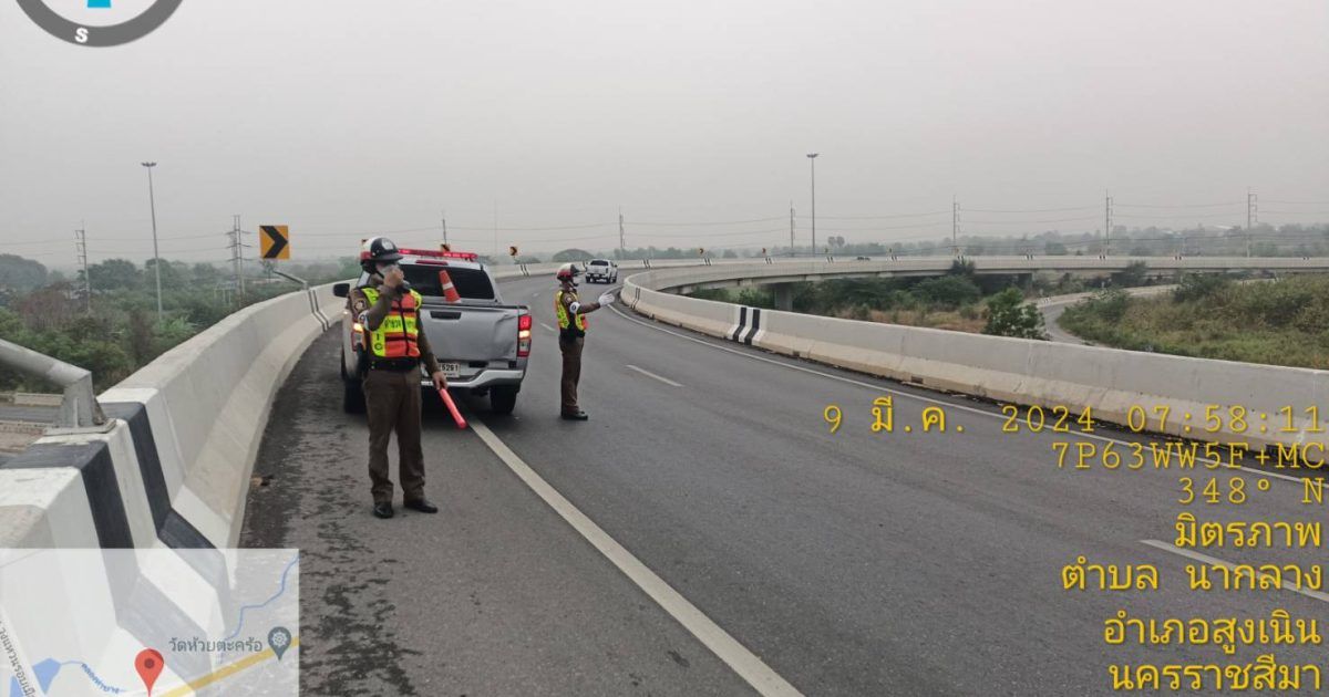 สถานีตำรวจภูธรสูงเนิน ขอรายงานถนนมิตรภาพจุดสะพานลอยวงแหวนห้วยตะคร้อ กม.127 ในวันที่ 9 มี.ค.2567เวลาประมาณ 08.00 น. ขณะนี้ สภาพการจราจร ขาเข้า นครราชสีมา มีปริมาณรถเบาบาง