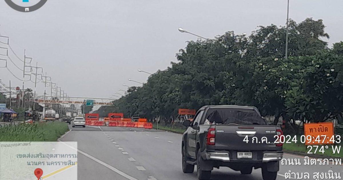 1.1 รถขาเข้ากรุงเทพฯ มี ปิดเส้นทางจราจร ในเส้นทางด่วน หลัก กม.123+200 – 119 ต้งแตบริเวณจุดกลับรถนวนคร ถึง หมวดทางหลวงสูงเนิน ปิดเส้นทางดังกล่าวประมาณ 1 เดือน เพื่อซ่อมสร้างถนนมิตรภาพ ส่วนการจราจรมีปริมาณรถปานกลางสภาพการจราจรยังเลคลื่อนตัวได้ดีในเส้นทางคู่ขนาน