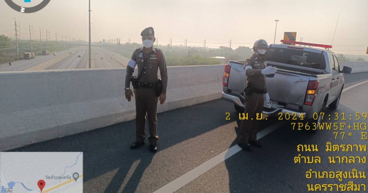 สถานีตำรวจภูธรสูงเนิน ขอรายงานถนนมิตรภาพจุดสะพานวงแหวนห้วยตะคร้อ กม.127 ในวันที่ 2 เม.ย.67 เวลาประมาณ 07.36 น.