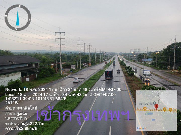 สภ.สูงเนิน จว.นครราชสีมา ขอรายงานสภาพการจราจรบนถนนสาย มิตรภาพบริเวณสะพานลอยมะเกลือใหม่ ก.ม.ที่ 18+250 ประจำวันที่วันที่ 18 พ.ค..67 เวลา 17.35 น. ดังนี้