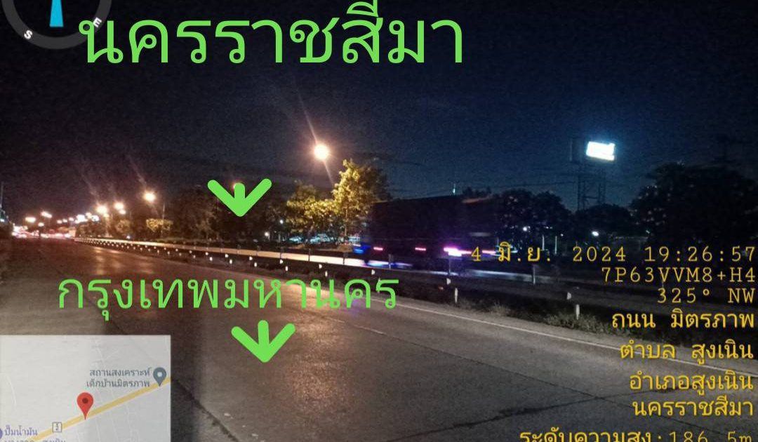 สถานีตำรวจภูธรสูงเนิน ขอรายงานถนนมิตรภาพจดสะพานลอยบุใหญ่ กม.120+500 ในวันที่ 4 มิ.ย ..67 เวลาประมาณ 19.30 น.