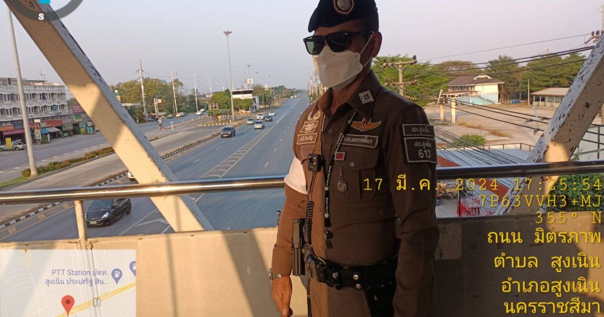 สถานีตำรวจภูธรสูงเนิน ขอรายงานถนนมิตรภาพจุดสะพานลอยหน้าบริษัทชีเกท กม.119 ในวันที่ 17 มี.ค.2567เวลาประมาณ 16.30 น.