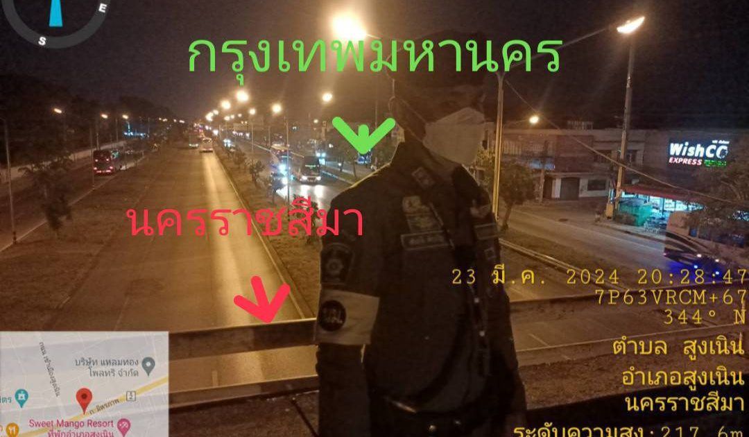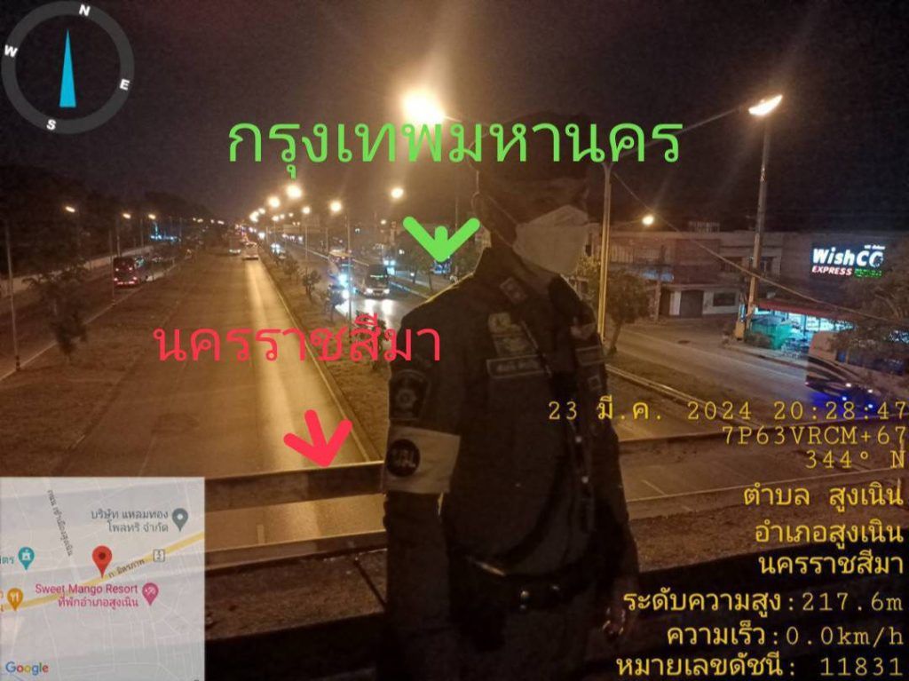 ร.ต.ต.สมบัติ อัคเสริญ รอง สว.(ป.)สภ.สูงเนิน สน.6-0 ขอรายงานถนนมิตรภาพจุดสะพานลอยหน้าบริษัทแหลมทอง กม.116+500 ในวันที่ 23 มี.ค..67 เวลาประมาณ 20.30 น.