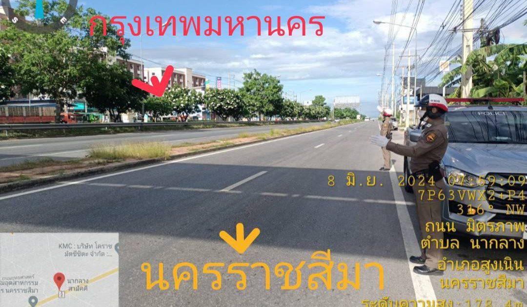 สถานีตำรวจภูธรสูงเนิน ขอรายงานถนนมิตรภาพจดสะพานลอยปากทางสลัคได กม.124 ในวันที่ 8 มิ.ย ..67