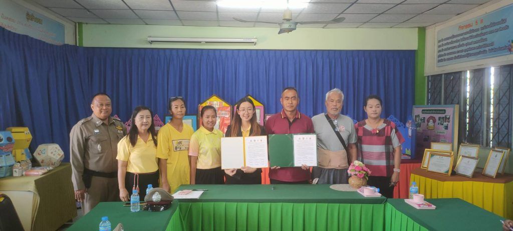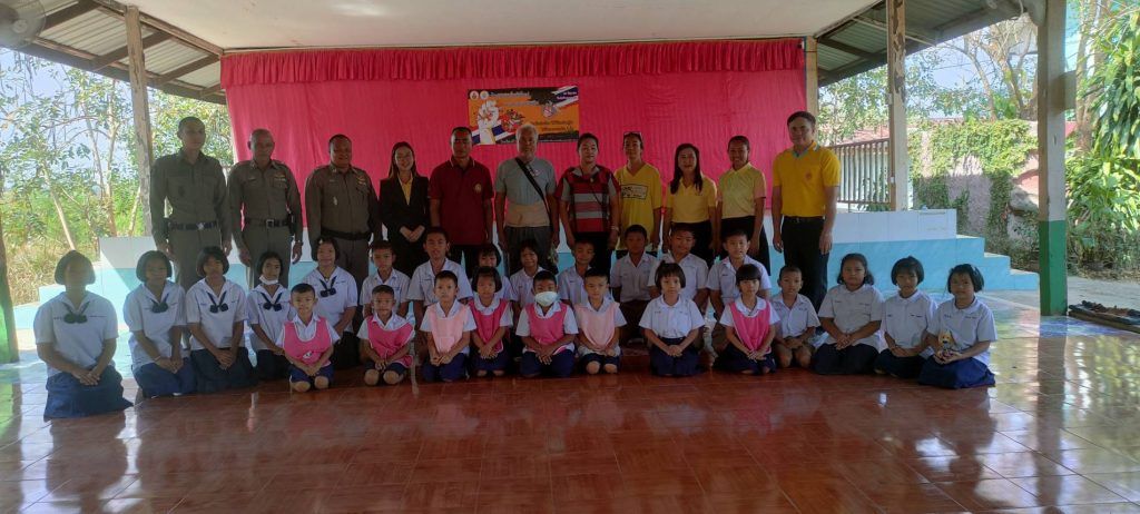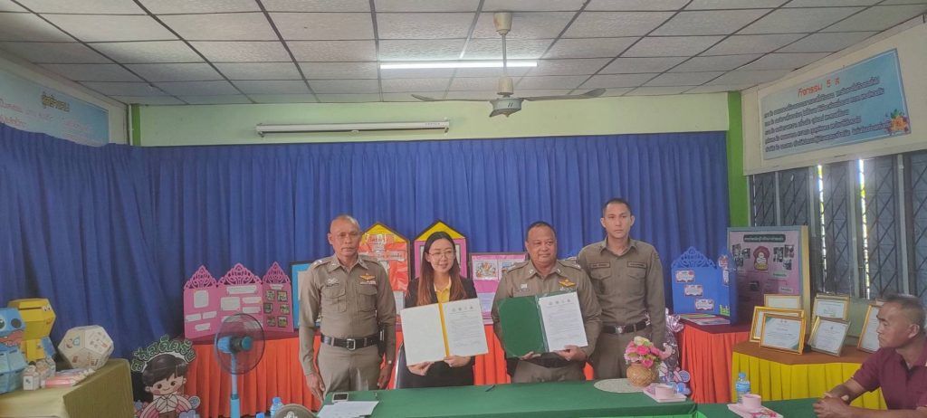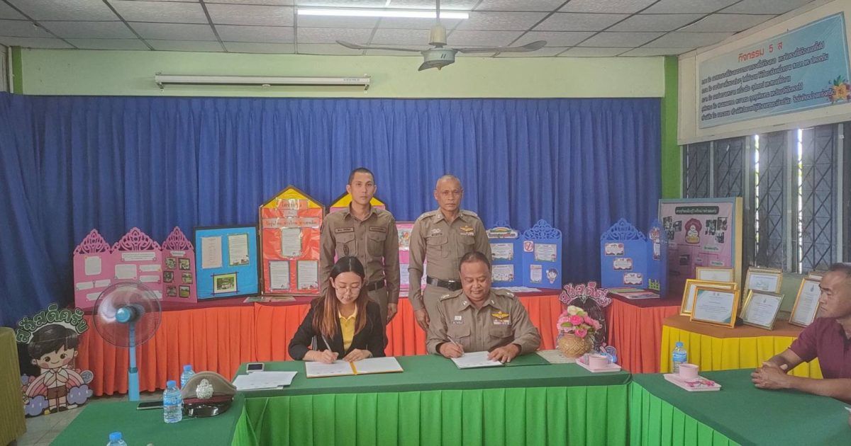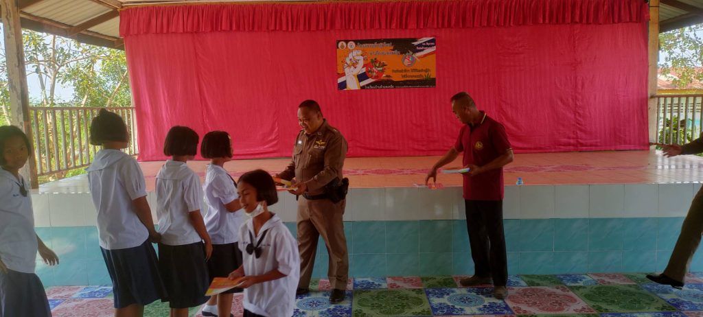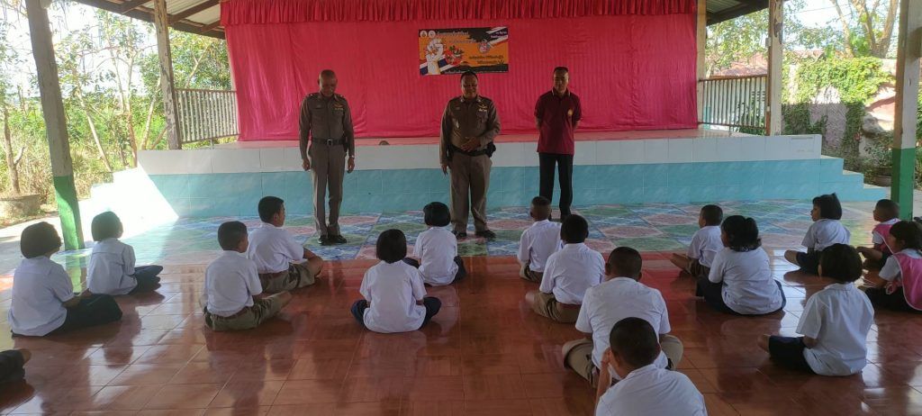 วันที่ 19 ก.พ.2567 เวลา 09.00-11.00 น.ภายใต้การอำนวยการ ของ พ.ต.อ.ศุภวัชร อังคสยาวัฒน์ ผกก.สภ.สูงเนิน,พ.ต.ท.พิทักษ์ วงศ์อาจ รอง ผกก.ป.ฯ,พ.ต.ท.ญาณวุฒิ ชินทุมพงษ์ สวป.ฯ มอบหมายให้พ.ต.ต.ภูมิรัฐ พิสุทธิ์คุณวุธน์ สวป.(ชส.)ฯ,ร.ต.อ.ถิรยุ ปวีณวัฒน์,ร.ต.ท.อรรถสิทธิ์ พฤกษามาลา,จ.ส.ต.บุญส่ง แนมพลกรัง ร่วมกิจกรรมแนะให้ความรู้เกี่ยวกับยาเสพติด,การป้องกันภัยการถูกล่วงละเมิดทางเพศออนไลน์ การป้องกันภัยจากบุคคลคลุ้มคลั่ง และร่วมพิธีลงนามบันทึกข้อตกลงลงนามร่วมมือ(MOU)สถานศึกษาสีขาวปลอดยาเสพติดและอบายมุข ณ โรงเรียนบ้านห้วยตะคร้อ ต.นากลาง อ.สูงเนิน จ.นครราชสีมา