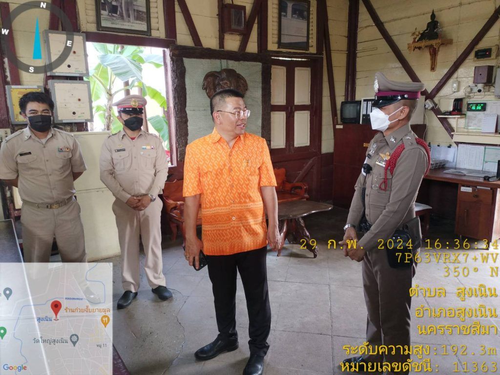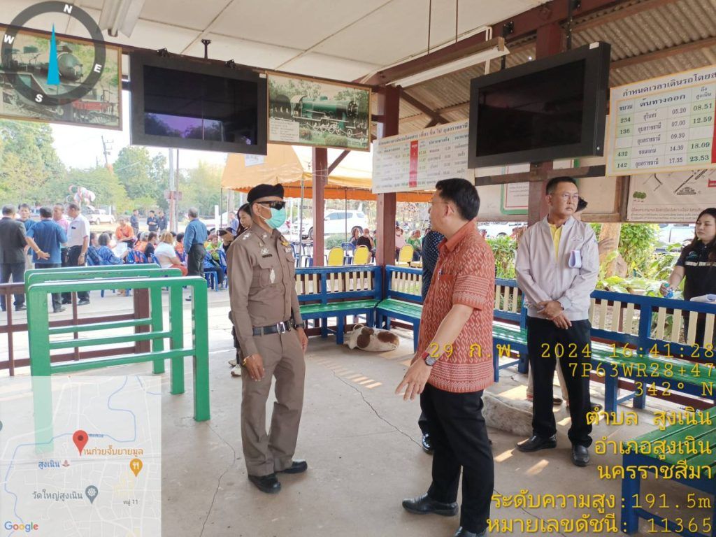 วันที่ 29 กุมภาพันธ์ 2567 เวลาประมาณ 14.30 น. พ.ต.ท.ญาณวุฒิ ชินมุมพงษ์ สวป.สภ.สูงเนิน พร้อมด้วย /สน.60 / 20 สายตรวจ จยย.และ สืบสวนเวร ฯพร้อม ว.30 ว.35 เตรียมพร้อมที่ สถานีรถไฟสูงเนิน เพื่อต้อนรับและอำนวยความสะดวก นายสุรพงษ์ ปิยะโชติ รัฐมนตรีช่วยว่าการกระทรวงคมนาคม เหตุการณ์ทั่วไปปกติ
